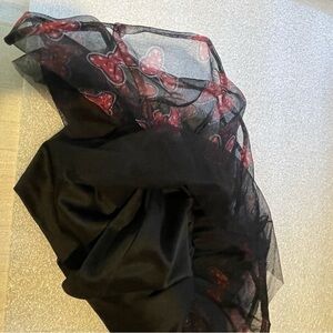 There are 3 layers to this skirt for fullness, The under layer is solid black and smooth so it will not be scratchy.