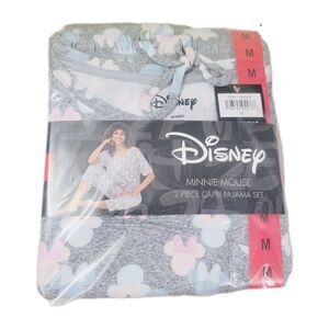 Disney Minnie Mouse Women's 2pc Capri Pant + Top Pajama Lounge Set Gray Size M