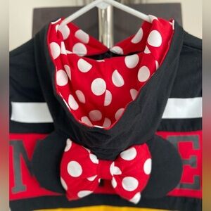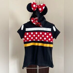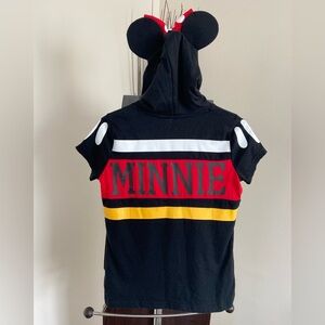 Minnie Mouse short sleeve hoodie with ears and bow tie. Great condition like new. XS but fits more like S-M. 17 inch armpit to armpit.