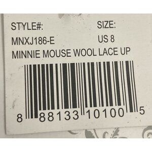 Showcasing iconic Minnie Mouse design, these gray polka dot wool sneakers feature red accents and durable lace-up closure. Ideal for casual and themed wear.