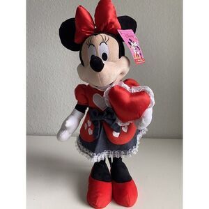 Disney Minnie Mouse Valentines Denim Dress Red Hearts Plush Greeter 24” NEW