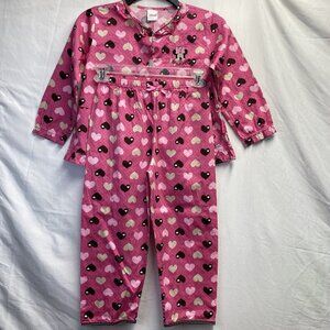 This Disney Minnie pajama set is perfect for your little princess! The two-piece set includes a pink button-up shirt with a ruffle neck and long sleeves, featuring the beloved Minnie Mouse character and heart pattern. The set also includes matching pants with an elastic waist, ensuring a comfortable fit for all seasons.