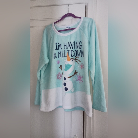 Cozy pajama set featuring Olaf. Mint and white colors. Fun 'I'm Having a Meltdown' design.