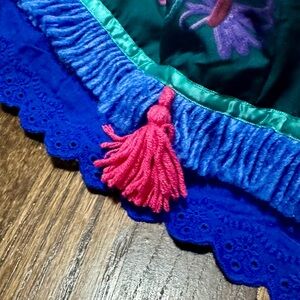 Little ones can embark on enchanting adventures in this Mirabel Costume! The wonderfully vibrant dress features a tiered skirt and appliqués, embroidered details, tassels and lace trims.