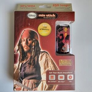Get ready to rock out with the Disney Mix Stick Pirates Of The Caribbean Depp Video MP3 Digital Media Player M1. This sleek black media player comes with a 1GB storage capacity and USB 2.0 connectivity, allowing you to easily transfer and play your favorite MP3 files.