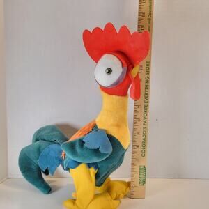 Disney Moana Hei Hei 14" plush stuffed animal by Just Play. Features talking sound effects when pressed. Bright multicolor design with embroidered details.