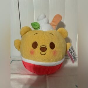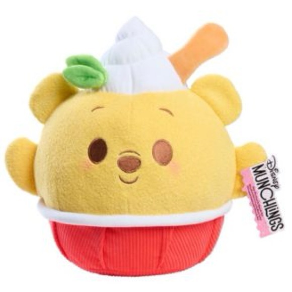 The Disney Munchlings Squeeze-a-Munch Large Lemon Mint Shaved Ice Winnie the Pooh plush toy is fun to squish and smells delish This plush treat reimagines Disney Winnie the Pooh as a lemon-scented frozen snack plushie complete with lemon ice, a mint sprig, and lots of personality. Sized 10 inches tall. They make snuggly additions to kids’ beds, dorm rooms, or party decor.