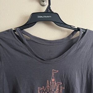 Disney brand tee shirt size tag has been worn out but it is an XL. Pit to pit measurements are 20in across. Most of the glitter has worn off the graphic. Price reflects condition.