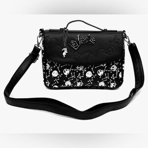 Featuring Jack Skellington's expressive face and bone motifs, this fold-over crossbody combines style and functionality. The black and white color palette adds a touch of sophistication to its quirky design. Crafted from high-quality materials, it offers durability and longevity.