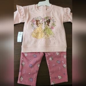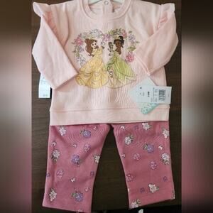 Disney NWT Princess Girl Outfit Belle and Tiana Sweatshirt and Leggings 6-9m