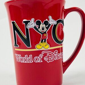 Disney mug, Mickey Mouse, World of Disney, NYC design, ceramic coffee, red Disney, Disney collector, vintage Disney, Disney drinkware, novelty ceramic, Mickey NYC, collectible mug, Disney memorabilia