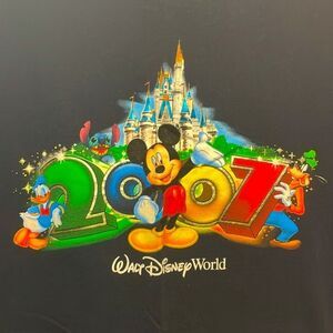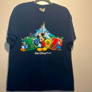 Disney- Navy Blue 2007 Large Letters with Mickey Mouse Graphic T- Shirt- Size L