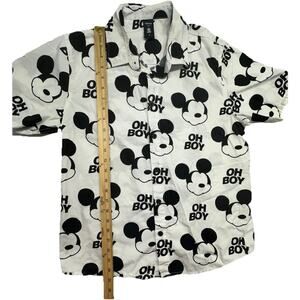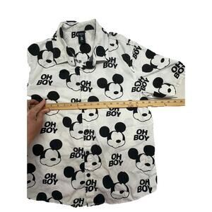 Disney Neff Shirt Mens Small Mickey Mouse Oh Boy White Black Button 100% Cotton
