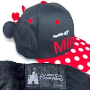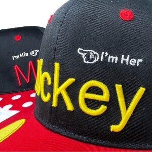 Rare couple’s I’m His Minnie I’m Her Mickey baseball hat set from Hong Kong Disneyland in Black adult size
