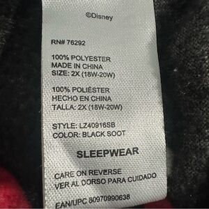 Fun Disney pajama bottoms with black and red design. Features playful character print. Perfect for cozy nights.