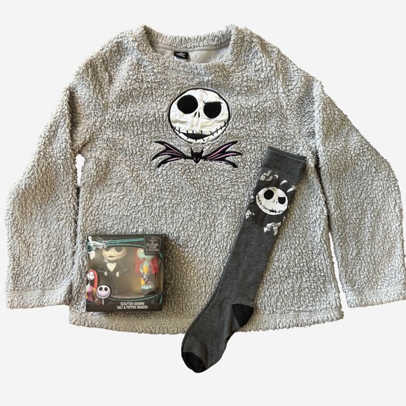 Disney Nightmare Before Christmas Fuzzy Sleepwear SMALL Sock & Shaker Bundle