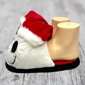 Disney's The Nightmare Before Christmas slippers, featuring the iconic Jack Skellington face with embroidered details and a festive Santa hat. The slippers have a soft, comfortable footbed and a durable sole for indoor wear. Ideal for cozy nights at home during the Christmas season, Halloween festivities, or simply adding a fun touch to everyday lounge-wear.
