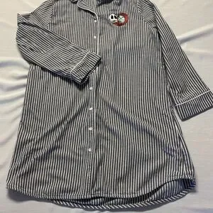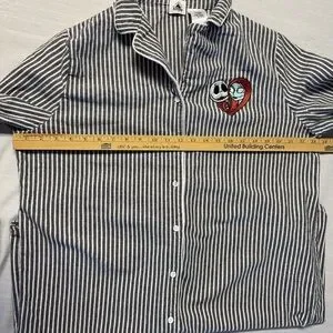 Disney Nightmare Before Christmas Jack & Sally striped button down sleep shirt.