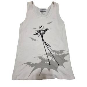 Authentic Disney Parks Merchandise! 2 piece Nightmare Before Christmas pajama set. White tank top has graphic of Jack Skellington. Pants have Jack's face all over a black background. Elastic waistband.