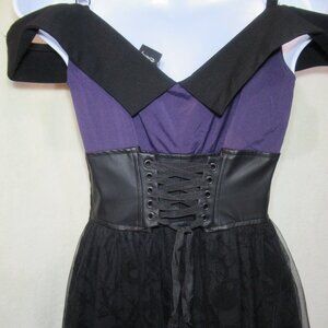 ✨ **Color:** Deep purple bodice with black lace overlay and faux leather corset waist 🖤💜