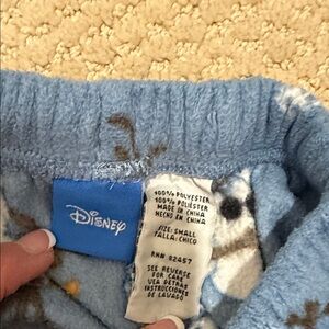 Soft pajama bottoms featuring Olaf from Disney. Blue background with playful snowflakes and character prints. Perfect for cozy nights.