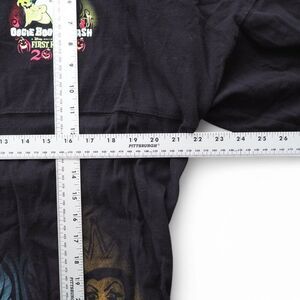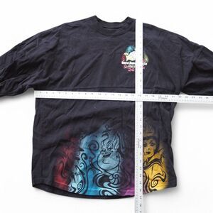 The Disney Oogie Boogie Bash 2019 First Fright Spirit Jersey is a must-have for any Disney villain fan or Halloween enthusiast. This limited-edition spirit jersey, commemorating the inaugural Oogie Boogie Bash at Disney California Adventure, features a bold design with a dark base and vibrant, neon-colored graphics. The back showcases iconic Disney villains – Maleficent, Ursula, and Jafar – in a striking, shadowy silhouette, while Oogie Boogie himself lurks above, accompanied by the playful phrase, "IT'S GOOD TO BE BAD." The oversized, comfortable fit and unique design make this spirit jersey a standout piece, perfect for spooky season celebrations or adding a touch of Disney magic to your everyday wardrobe. This is a rare find from the first year of the Oogie Boogie Bash, making it a highly collectible item.