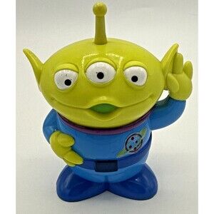 Item is in good condition , there is some wear so please see photos. The Disney Pixar Toy Story Little Green Alien Pizza Planet Plastic Piggy Bank is a small, green/blue piggy bank featuring the beloved Alien character from the Toy Story franchise. Made of ceramic and plastic, this piggy bank is a fun and cute addition to any home décor, perfect for fans of the animated films. With its playful design and unique color scheme, this piggy bank brings a touch of whimsy and charm to any space.