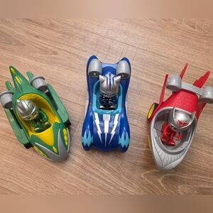 PJ Masks Turbo Blast Racers featuring the Gekko-Mobile, Cat-Car, and Owl Glider vehicles with accompanying figures.