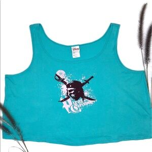 Picturing a Pirates of the Caribbean tank top by Disney in teal and pink 2XL