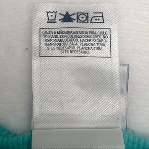 Flat lay measurements, care and content tags in photos