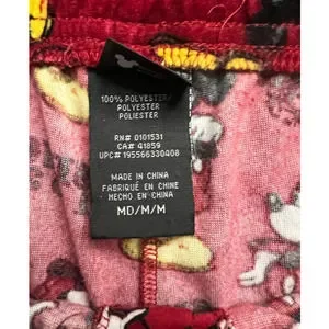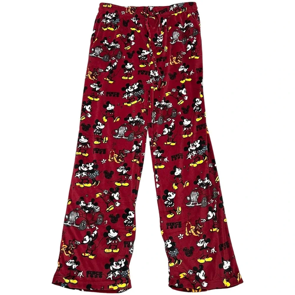 Disney Pajama Lounge Pants Size M Red Micky Minnie Mouse Print