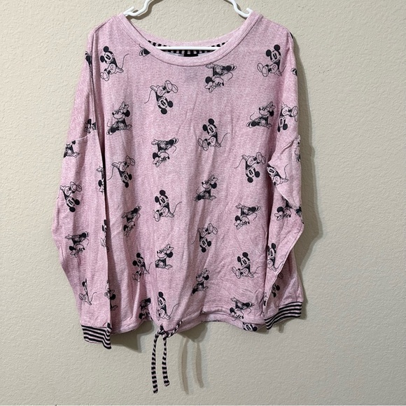 Disney Pajama Top Pink Black Mickey Minnie Print Long Sleeve Drawstring PJs Soft