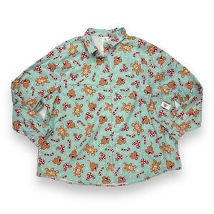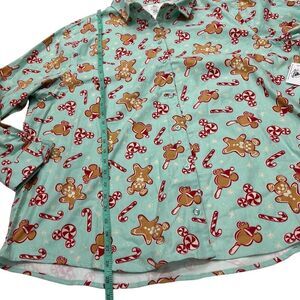Disney Pajama Top 2X Mickey Mouse Long Sleeve Christmas Gingerbread Candy Ears Christmas Holiday Festive Tree Candy Cane Cookies
