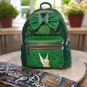 Loungefly Disney Parks, Tinker Bell backpack, Disney mini backpack, green sequin loungefly, Disney parks exclusive bag, Disney collector backpack, Tinkerbell cosplay bag, Disneybound accessories, Disney trip essentials, Peter Pan bag, limited edition loungefly, Disneyland backpack, Disney World style, festival backpack, fairycore bag, pixie dust style Disneybound, disney bound, disney bounding, disneybounding, Peter Pan