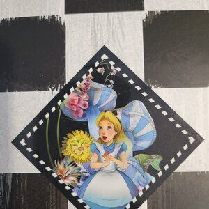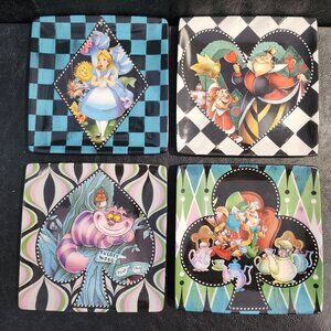 Wonderful in original box Disney Parks Alice in Wonderland ceramic salad/ dessert plates. One plate features Alice there is one with the Mad Hatter, another with the Cheshire cat. And of course, the Queen of Hearts. In like new condition 6.25 inches in size. Has Disney Parks logo on box and plates. Quantity 4. Non-smoking pet free home.