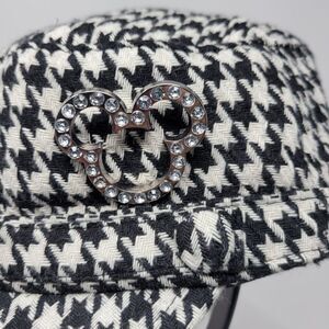 Disney Parks Authentic Black White Houndstooth Newsboy Cap Rhinestone Mickey