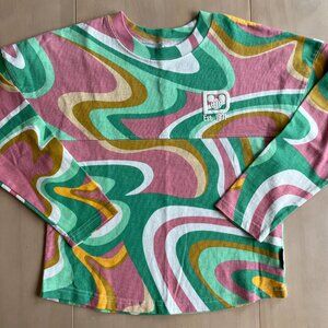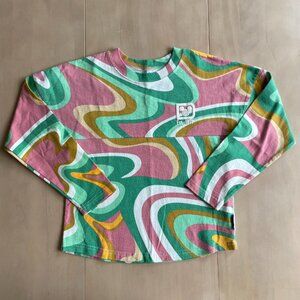 Disney Parks Authentic Walt Disney World Retro Swirl Spirit Jersey - Size 5/6. In excellent colors. Fun vibrant colors, pink, orange, green white, long sleeves, 100% cotton.