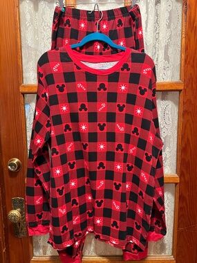 Keywords: Disney Parks, Authentic Original, Pajama Set, Women's Sleepwear, Butterfly Print, Red and Green, Mickey Mouse accents, Plaid Butterflies, XXL Pajamas, Cotton Pajamas, Long Sleeve Top, Pants Set, Loungewear, Comfortable, Disney Themed