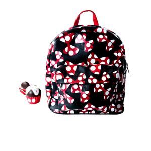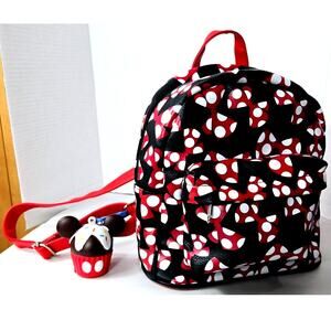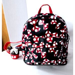 Disney Parks Backpack Minnie Mouse Large Bow Bag w/ Mickey Cupcake Keychain