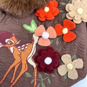 Disney Parks Bambi Quilted Embroidered Bucket Bag Purse Pom Pom Flower Applique