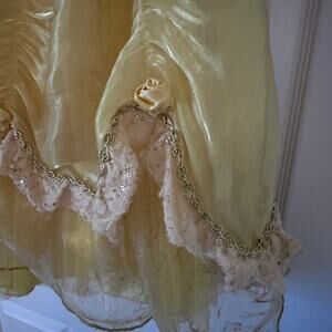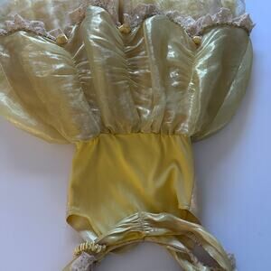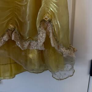 This beautiful Belle dress is perfect for any Disney lover! It's an original from Disney Parks, featuring a yellow and gold embroidered full skirt. The dress also has lovely rose detailing. There is minor wear, but overall it's in great condition. Perfect for dress-up or Halloween!