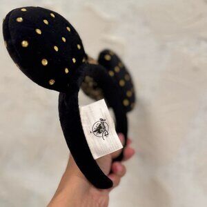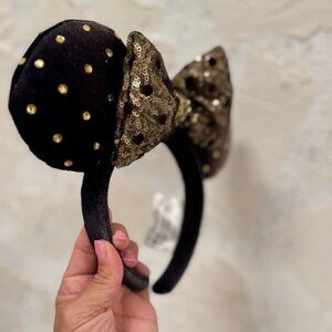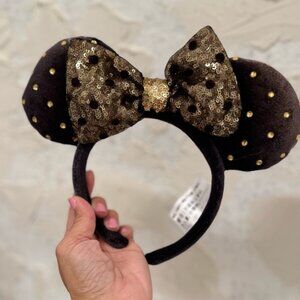 Disney Parks Black Jeweled Studded Gold Minnie Mouse Plush Ear Headband