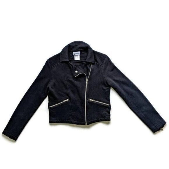 Disney Parks Black Moto Zip Sweatshirt Jacket w/ Silver Studded Mickey Mouse on Back
