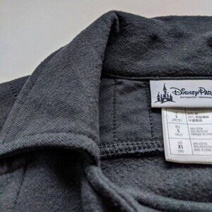 Disney Parks Black Moto Zip Sweatshirt Jacket XS FLAWS Mickey Mouse Distressed