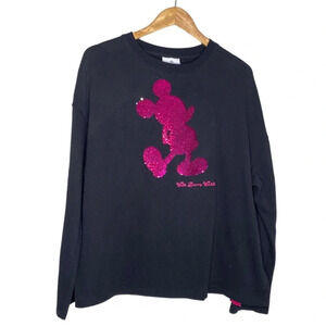 Disney Parks Black Pink Reversible Sequin Mickey Mouse Sweatshirt Women's Medium
