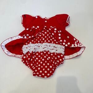 Minnie Mouse Disney parks Disney world onesie baby polka dots 6 months snaps bodysuit cotton girly elastic ruffled ribbon puff sleeves red white
