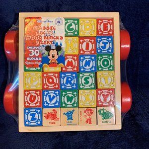 Disney Parks Classic ABC 123 Wood Blocks and cart