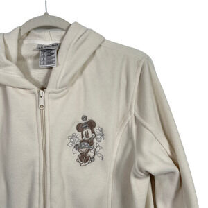 Disney Parks Cream Full Zip Hoodie Minnie Mouse Embroidered Womens Large