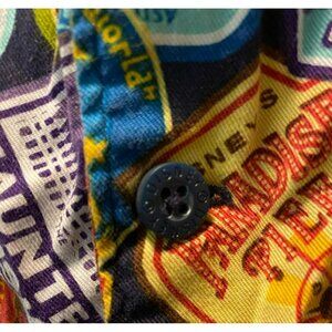 Disney Parks Disneyland Attraction Badges Mens Button-Up Shirt Medium Multicolor