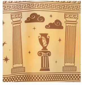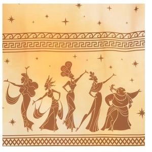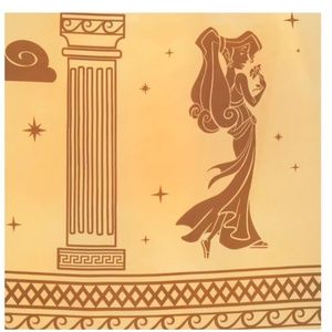 Screen art around hem featuring Megara, the five muses, columns and scrollworld